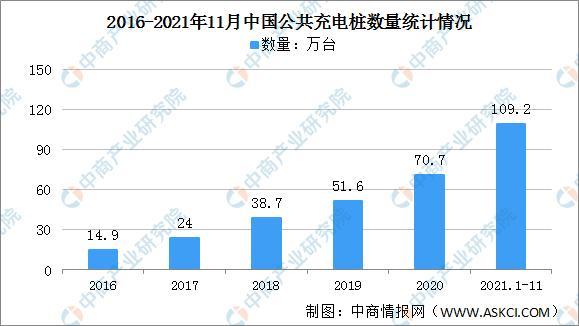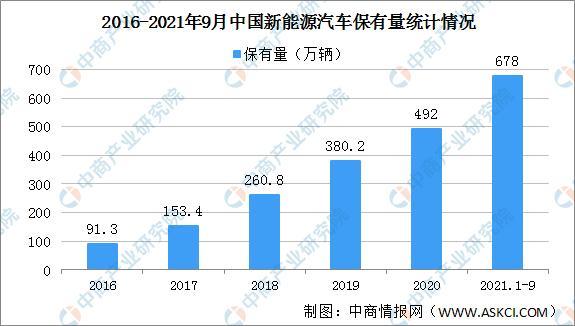 近年来,新能源汽车保有量持续增长。2016年中国新能源汽车保有量不足100万辆。截至2021年9月,全国新能源汽车保有量达678万辆,占汽车总量的2.28%。其中纯电动汽车保有量552万辆,占新能源汽车总量的81.53%。此外,新能源汽车销量持续增长,2021年1-11月,新能源汽车销量299万辆,同比增长1.7倍。根据《新能源汽车产业发展规划(2021-2035年)》,到2025年,新能源汽车新车销量要达到汽车销售总量的20%左右。新能源汽车销量和保有量上升的空间还很大,与之相配套的充电桩行业现在还处于快速发展阶段。